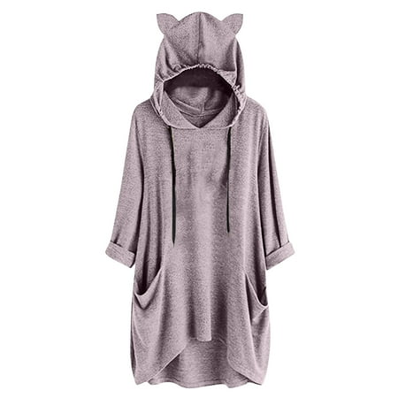 Womens Long Sleeve Dress Hot Sale Clearance Women S Cat Ear Hoodie Pullover Long Sleeve Hooded Cute Sweatshirt Dress