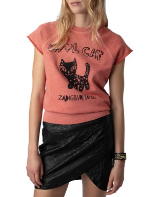 Women Hotfix Choupette Embellished Cat Tee - - Size L